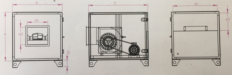 | V | Hz | Kw | A | d/d | m3/h | mm /ss | dB(A) | A | B | C | D | a1 | a2 | e1 | e2 | |